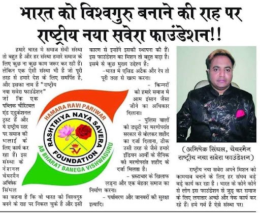 Established in the year 2020, Rashtriya Naya Savera Foundation was born out of a profound commitment to fulfill the unachieved philanthropic dreams of **Late Shri Ravindra Kumar Gupta**. We are not merely a social organization; we are a systemic intervention force. We specialize in identifying critical gaps in our society—be it the silent hunger of an orphan, the abandonment of a senior citizen, or the grueling legal struggle of an acid attack survivor—and filling those gaps with sustainable, compassionate solutions.