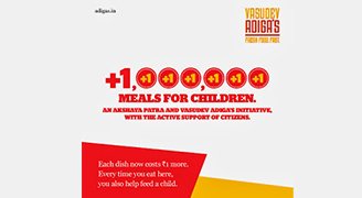 This campaign, titled ‘+1’, is slated to be launched on Children’s Day, November 14th, 2013 and will roll out across 20 outlets in Bangalore and the rest of Karnataka. The price of every item on VasudevAdiga’s menu will be increased by Re 1 and the proceeds will be donated to The Akshaya Patra Foundation.