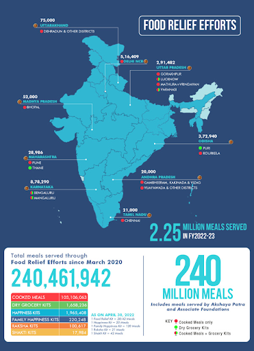 The consistent support from government agencies, district authorities and numerous well-wishers has helped us at the Akshaya Patra Foundation in providing 24.04-Crores COVID-relief meals since our first endeavours in the year 2020.