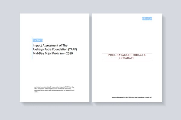 AC Nielson conducts a study on Akshaya Patra's school lunch programme, finding significant improvement in attendance and enrolment since the commencement of the initiative