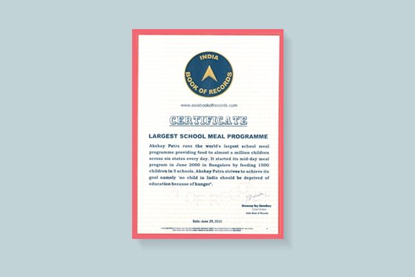 Recognised in the Limca Book of Records as the 'World's Largest School Meal Programme'