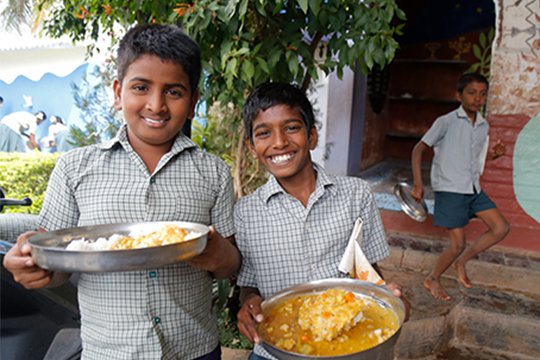 Our centralised kitchens have the capacity to undertake large-scale feeding, typically up to 100,000 meals a day, whilst ensuring safe handling, preparation and delivery of the food. These units manage all operations from a single point of control. These include receiving and storing raw material, preparation and delivery of meals, and even maintenance. The scale and operational efficiency of these semi-automated kitchens help us maximise the impact of the school feeding programme.