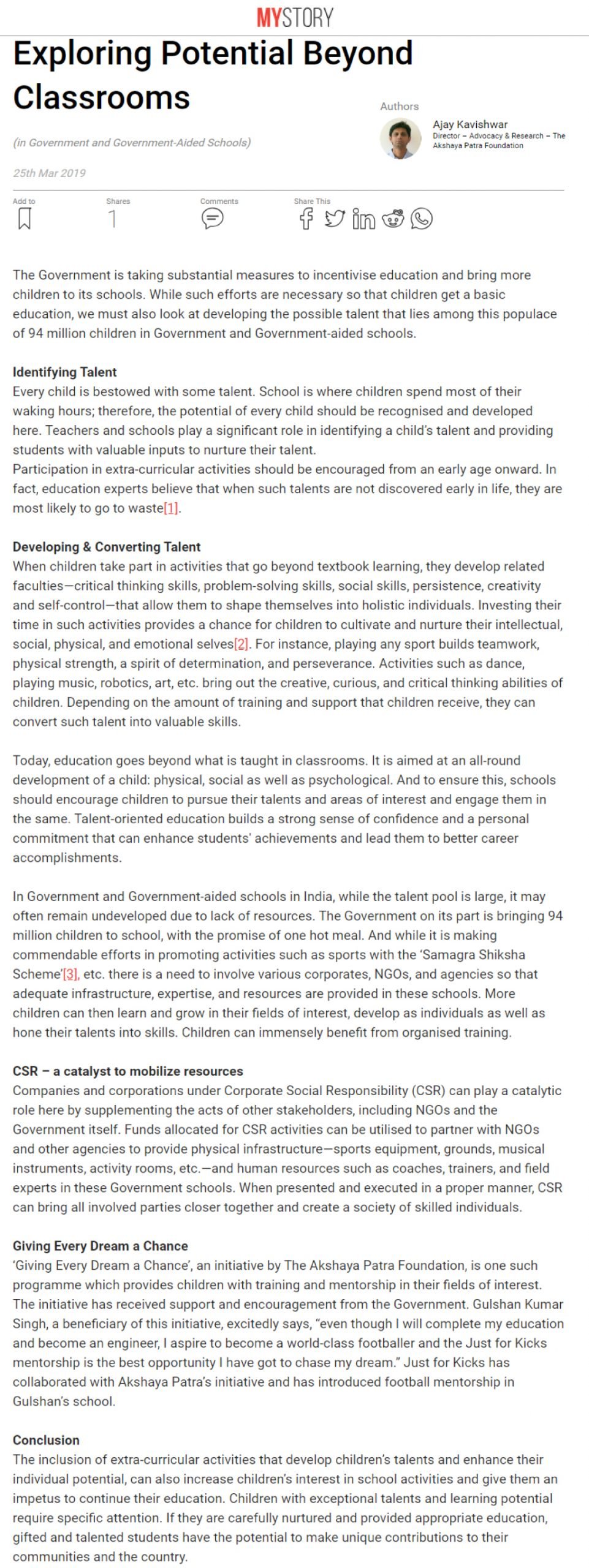 Exploring Potential Beyond Classrooms