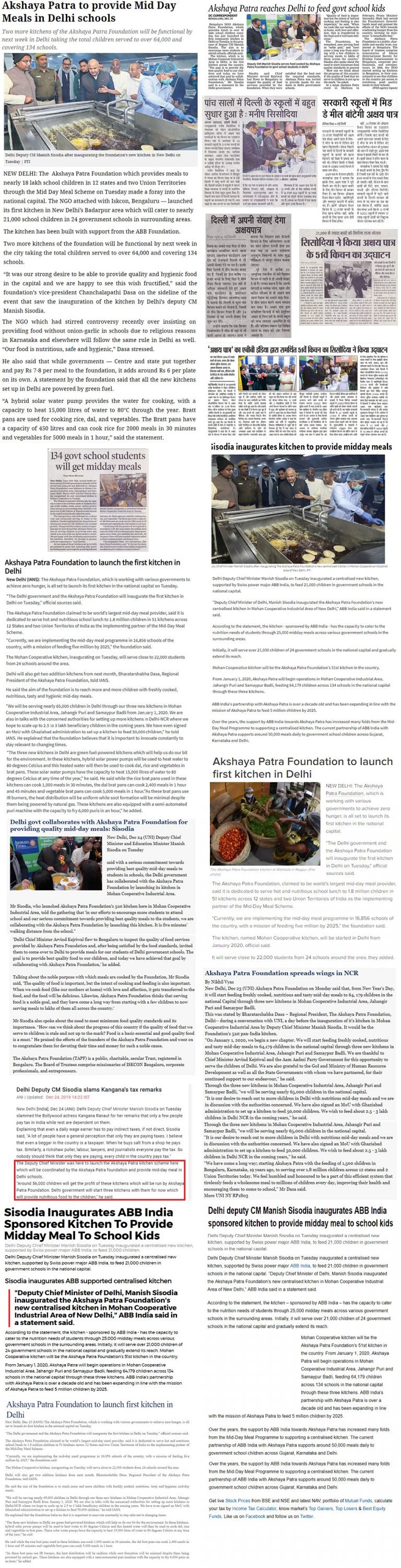 Hon’ble Deputy CM of Delhi, Shri Manish Sisodia Inaugurates Our New Kitchen Supported by ABB India