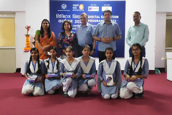 Ghaziabad District, March 17, 2023: The Akshaya Patra Foundation and Adish and Asha Jain Foundation collaborated to provide Android tablets to 70 students of Government Girl’s Inter College, Vijaynagar, Ghaziabad, to mark the launch of the Digital Education Initiative. Akshaya Patra is implementing the initiative with the support of corporate donors and BYJU’s to bridge the digital divide and further digital inclusiveness by providing students belonging to economically weaker sections of society access to good quality, modern education free of cost.
